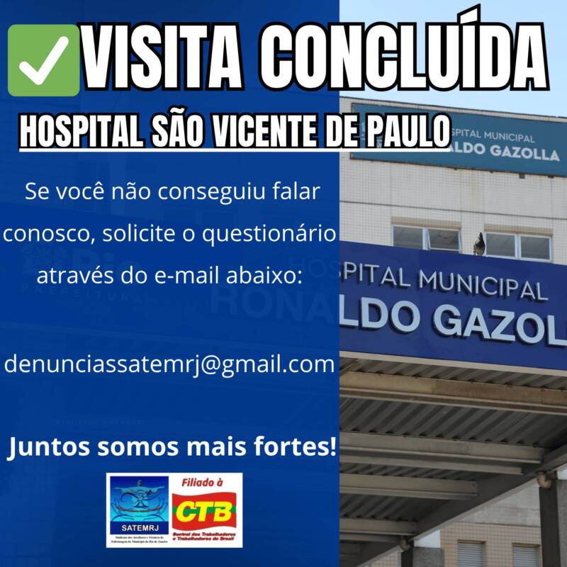 SATEMRJ EM AÇÃO: HOSPITAL SÃO VICENTE DE PAULO! 🚨✊A diretora do SATEMRJ, Sara Miranda, esteve hoje no Hospital São Vicente de Paulo para dar continuidade