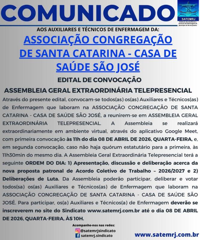 Ocorreu, sexta-feira, 03/07, reunião da mesa de negociação do SUS. Presentes SATEMRJ e demais sindicatos representantes dos trabalhadores da saúde e representantes da secretaria municipal de Saúde. Na pauta: Os cortes nos contracheques dos servidores que estão afastados pelo código 152. O direito ao retorno destes trabalhadores as suas unidades. PCCS Foram questionados os cortes nos contracheques dos trabalhadores e a falta de comunicação prévia, lembrando, inclusive, que desde o início do mês de Junho, já circulava especulação desses cortes na rede. Desde o mês passado o SATEMRJ e demais sindicatos pediam respostas sobre o assunto sem exito. Também foi questionado que em momento algum, a SMS mencionou, através da RESOLUÇÃO Nº 4413 DE 27 DE MAIO DE 2020, como condição do afastamento tais cortes. Foi informado por representantes da SMS na mesa, que a ordem dos cortes nos contracheque dos trabalhadores não foi decisão da SMS ou RH, e sim da Subsecretaria de Serviços Compartilhados (SUBISC), que desde o início da pandemia, vem adequando a situação nova do afastamento sanitário à legislação trabalhista, tendo este mês entendido que quem está pelo código 152, não deve receber sem exercer as atividades. Fomos informados que há um diálogo entre RH e SUBISC para possível reposição em folha suplementar de valores, como a insalubridade, que causa impacto negativo no cálculo do triênio. Em relação ao e-mail, enviado aos Rhs das unidades, com a determinação de que os trabalhadores só poderiam retornar após novo decreto do Prefeito, informaram, que nesta data, do dia 03/07, foi enviado outro solicitando desconsiderar o anterior. Esses profissionais terão como critério, no retorno, a possibilidade de exercerem suas funções, evitando contato direto com paciente de Covid-19. Também foi perguntado como está o andamento do PCCS. E recebemos a informação que o processo está para cálculo do impacto financeiro. Porém, quando questionado onde se encontrava, disseram que não saiu da SUBISC desde a última reunião da mesa, quando os sindicatos cobraram a falta do cálculo para encaminhamento a Câmara, perdendo o prazo para votação. O SATEMRJ incluiu na pauta os assédios sofridos por nossos Auxiliares e Técnicos nas unidades. Solicitando averiguação, ação e resposta da SMS. O SATEMRJ não aceitará os cortes nos salários de nossos trabalhadores do grupo de risco. Estes profissionais sempre estiveram na linha de frente em todas as epidemias, prestam assistência ao usuário do SUS com respeito e profissionalismo, precisando agora serem preservados por maior risco de complicações pelo Covid-19. Não cabendo qualquer desconto que prejudique o sustento dos mesmos já abalados psicologicamente e fragilizados por comorbidades. Nossos trabalhadores precisam ser acolhidos. Vamos aguardar os desdobramentos. Não podemos nos calar. Vamos pressionar e lutar!