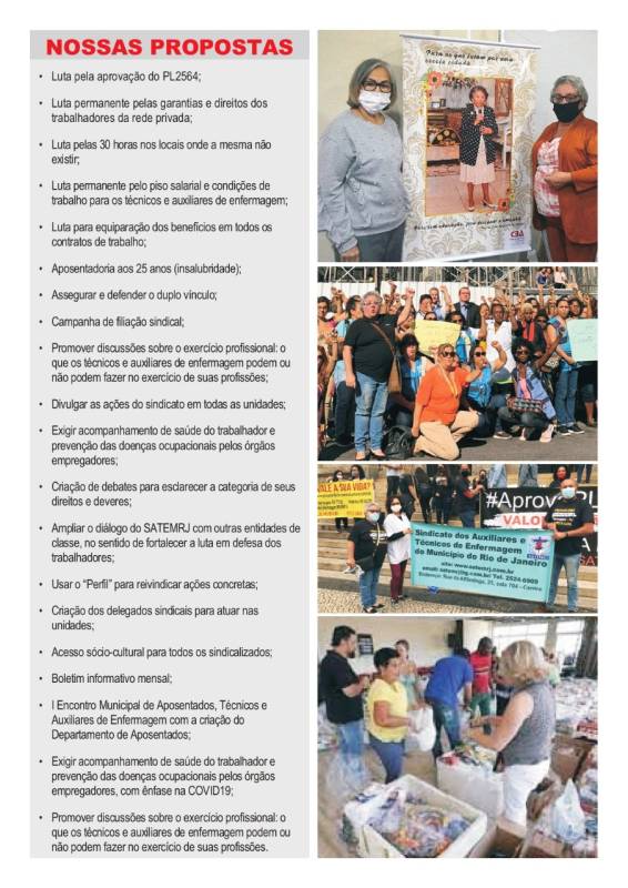 A história do SATEMRJ é recheada de conquistas, com 32 anos de luta pelos auxiliares e técnicos de enfermagem do município do Rio de Janeiro. Com resultados positivos em diversas ações na justiça, reversão de direitos suprimidos, apoio ao profissional contra o assédio moral, e etc. Você pode conferir o histórico deste trabalho nas redes sociais e no site do sindicato (www.satemrj.com.br) “Reafirmo a continuidade do nosso trabalho, da nova gestão que assumiu agora, de cada um aqui eleito se empenhará ao máximo na luta pelos os anseios da categoria, como também, um comprometimento pessoal, afinal, também sou uma profissional da enfermagem. Travar lutas e estar presente no dia-a-dia do trabalhador da saúde. Ressaltando para os auxiliares e técnicos de enfermagem do Rio que o sindicato é casa dos trabalhadores. Se associe e participe.” Miriam Lopes, presidente eleita do SATEMRJ.