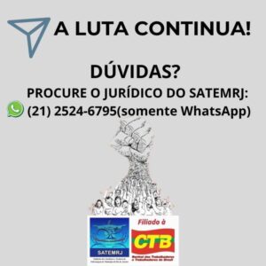 DÚVIDAS? O JURÍDICO DO SATEMRJ ESTÁ À DISPOSIÇÃO!