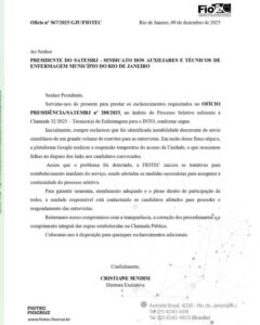 Após denúncias da categoria, a presidente Miriam Lopes agiu firme em 08/12, enviando os Ofícios 287 e 288/2025 à FIOTEC cobrando explicações sobre a Chamada 32/2025 (INTO).