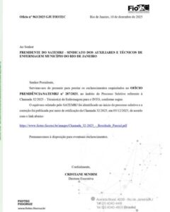 Após denúncias da categoria, a presidente Miriam Lopes agiu firme em 08/12, enviando os Ofícios 287 e 288/2025 à FIOTEC cobrando explicações sobre a Chamada 32/2025 (INTO).