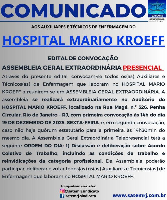 A transparência é fundamental para que o trabalhador, que já enfrenta tantas dificuldades financeiras e desgaste físico, possa se planejar. O SATEMRJ segue vigilante, aguardando o retorno oficial e pressionando pela valorização que a Enfermagem merece.