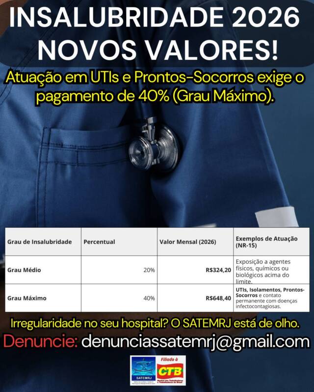 ⚠️ ATENÇÃO: Se este é o seu caso e você não está recebendo o valor correto, o SATEMRJ está pronto para agir. O sindicato buscará o direito de todos, seja no seu setor específico ou no hospital inteiro!